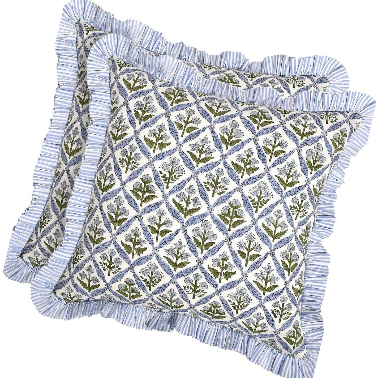 2 шт. Романтические наволочки с цветочным принтом и оборками, мягкие полиэстеровые квадратные чехлы для подушек для гостиной, спальни синий