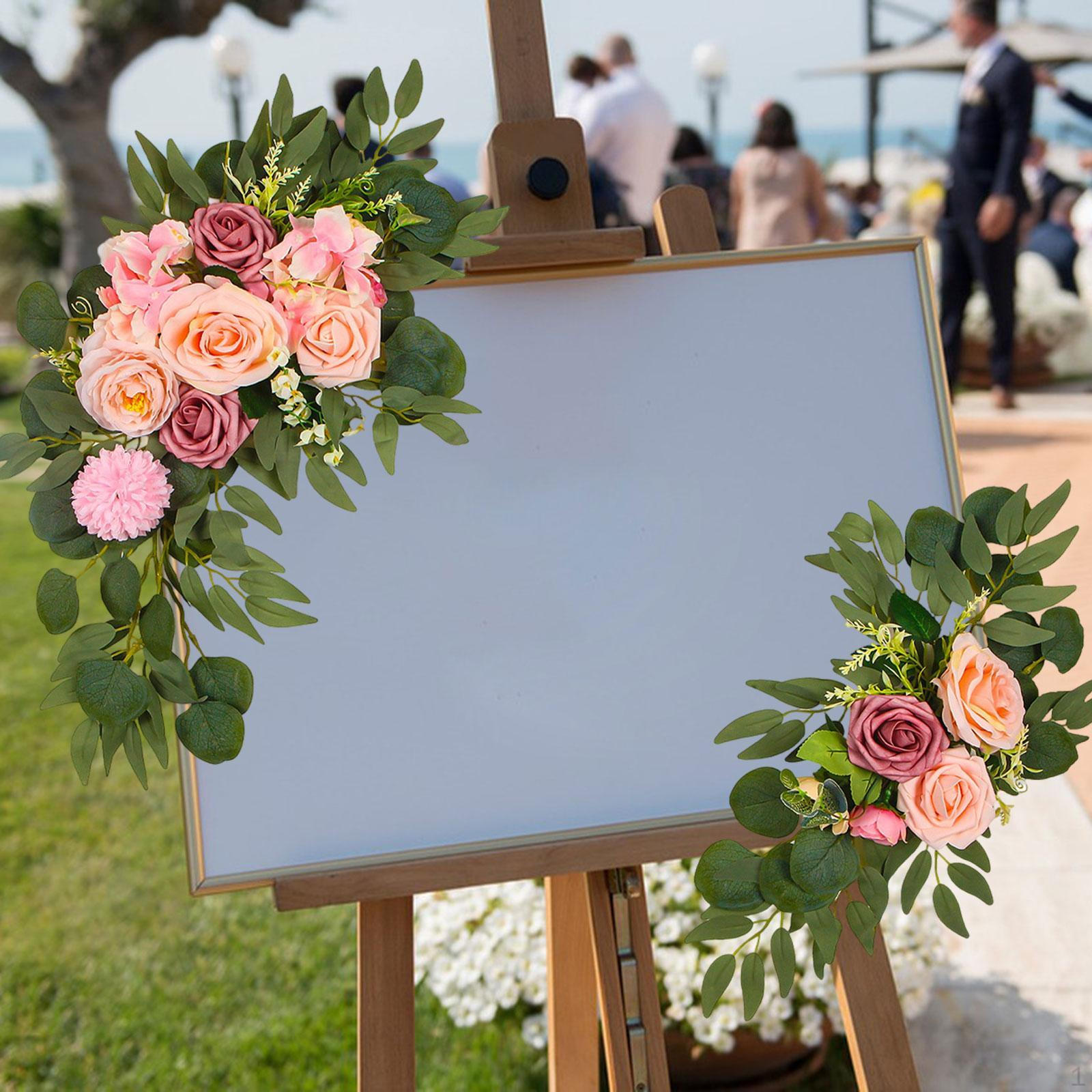 2 шт. Свадебная арка цветы искусственные цветочные гирлянды дверная перемычка зеленые листья шелковые цветы розовый