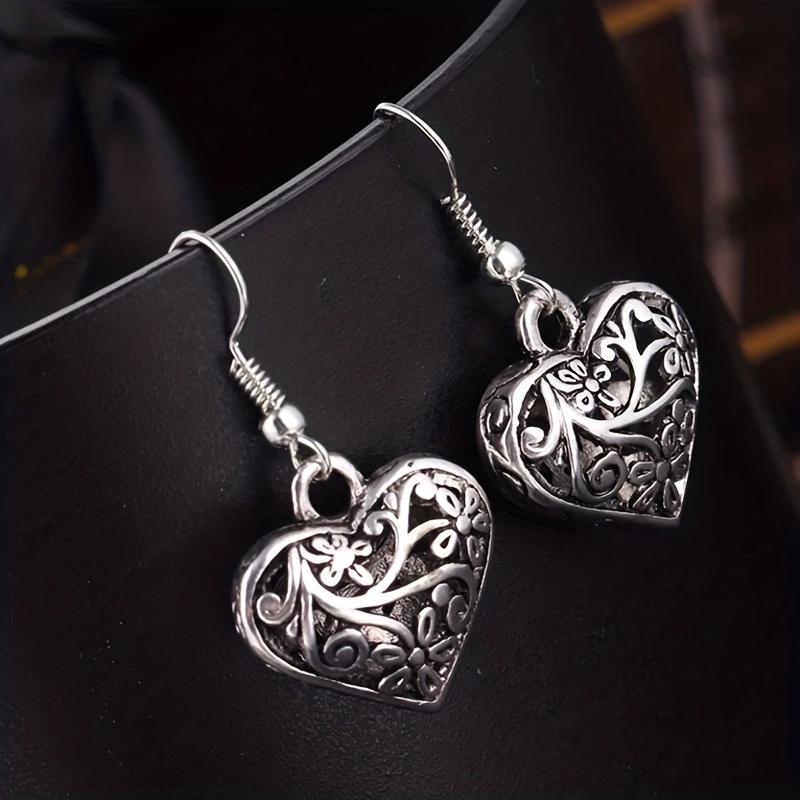 2 шт. Серьги из нержавеющей стали в стиле ретро, уникальные полые серьги-подвески в форме сердца, идеально подходят для любителей ювелирных изделий 1 Pair