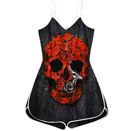 Halloween Costumes For Women Women Fashion Sleeveless Halloween Sexy One-Piece Pumpkin Skull Jumpsuit Halloween Costumes Polyester Red M