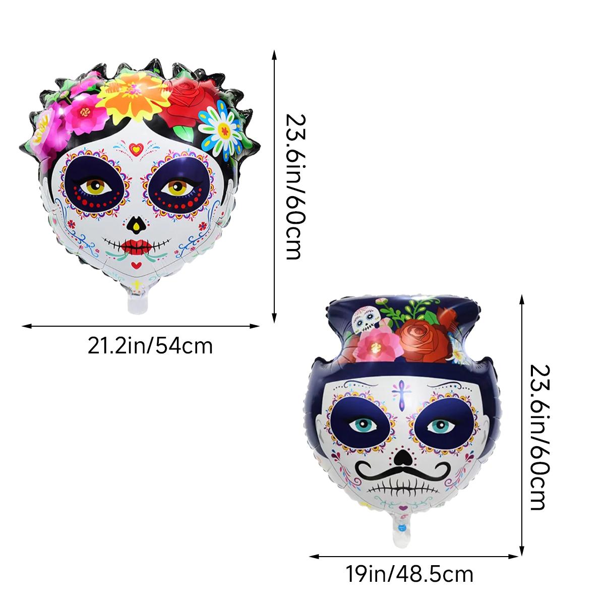 2 шт. Шарики из алюминиевой фольги в виде сахарного черепа для жениха и невесты, День мертвых, Хэллоуин, цветы, черепа, украшения для вечеринки Other