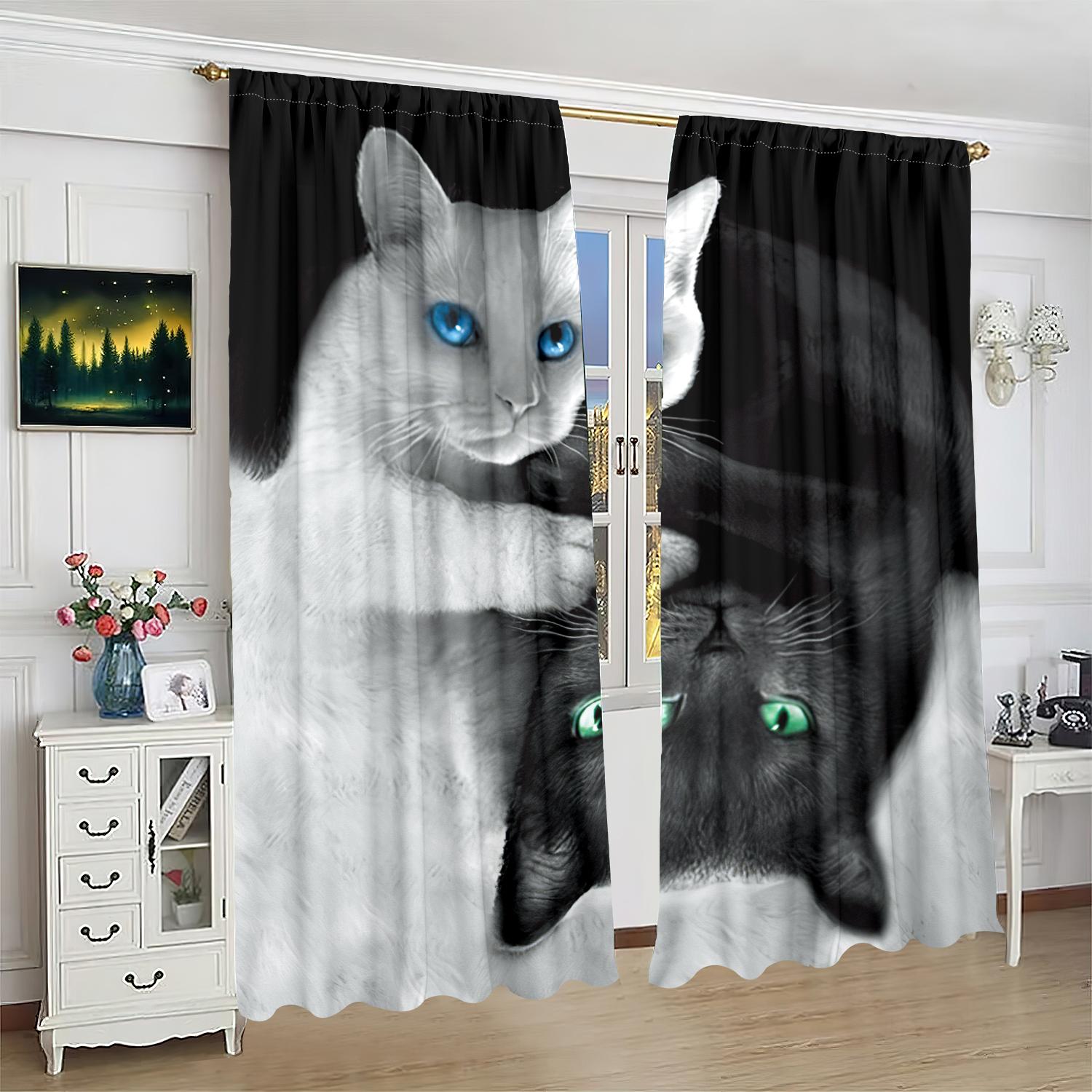 2 шт. - Штора с принтом «Кот» - Материал полиэстер - Подходит для спальни, гостиной, кабинета, уединения 30inchx65inchx2Pcs