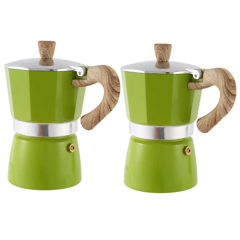 2 шт., алюминиевая кофемашина для итальянского мокко, эспрессо, фильтр, плита, 3 чашки (зеленая)