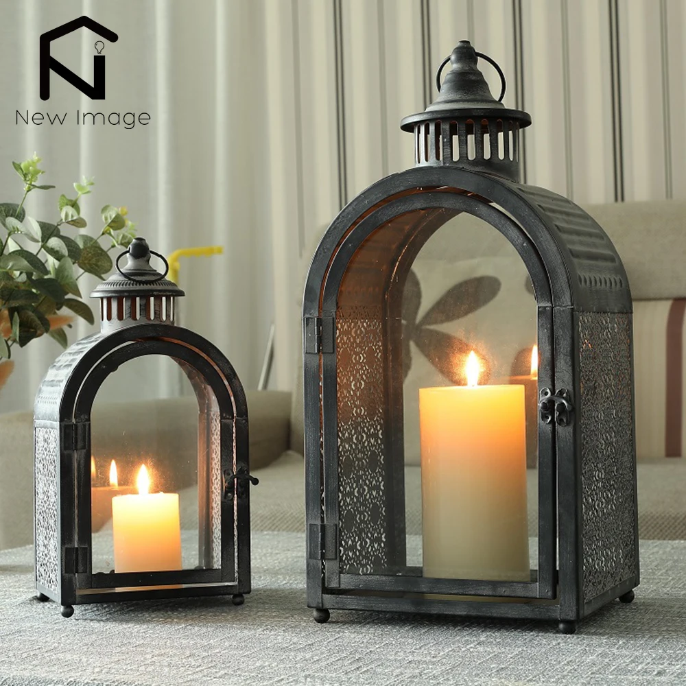2 шт. античный серый подсвечник, фонари, металл, подвесной фонарь для помещений, улицы, событий, винтажное украшение для дома, свадьбы, вечеринки