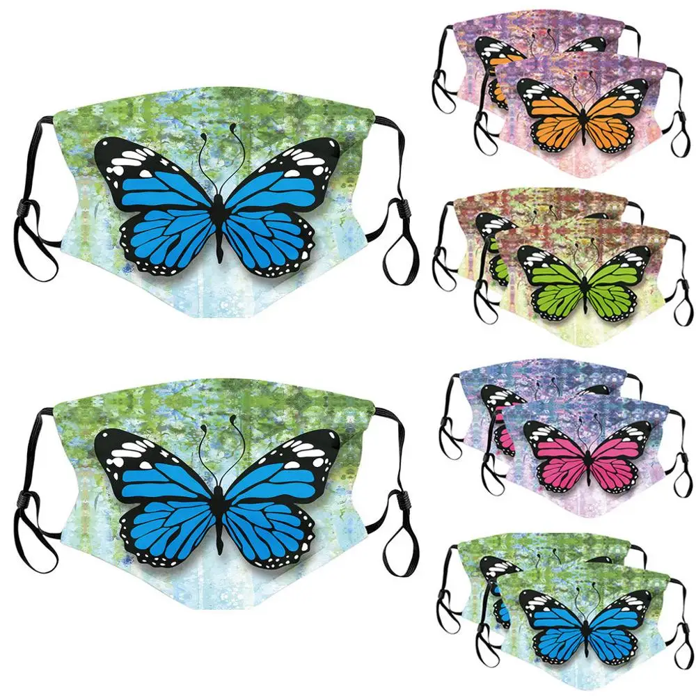 2 шт., ветрозащитная Пылезащитная маска, модная маска для лица с принтом бабочки, многоразовая и моющаяся маска для рта, 4 шт., уплотнительный ...