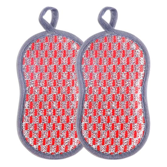 2 шт. губка для мытья посуды с ремешком износостойкая богатая пена двусторонняя не царапающая кухонная губка для мытья посуды красный