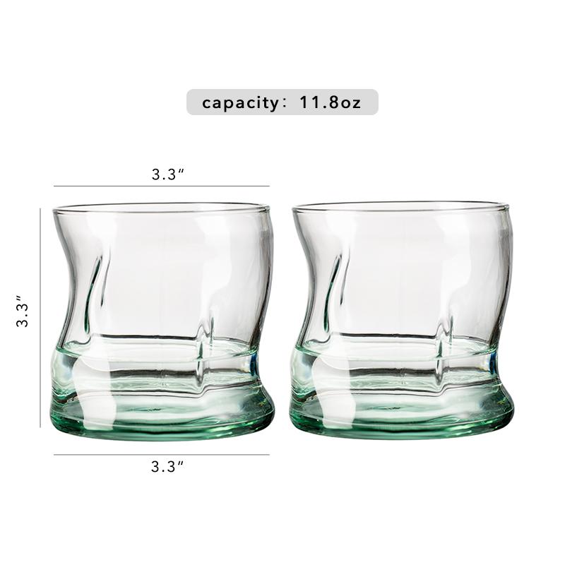 2 шт. зеленые волнистые стеклянные стаканы для напитков, цветное стекло, домашняя чашка для кофе, сока, воды, прозрачный/бирюзовый градиент, 12-14 унций 301-400ml