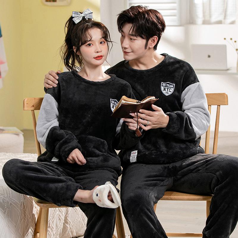 2 шт./комплект женская пижама из кораллового флиса осень-зима утепленная домашняя одежда комплект теплый пуловер можно носить на улице M