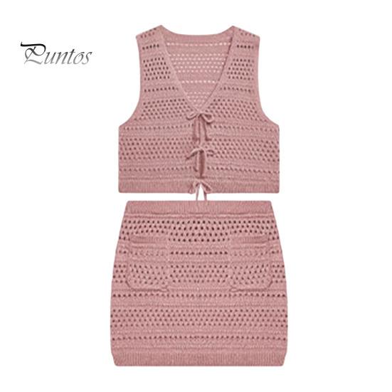 2 шт./комплект женский жилет юбка костюм шнуровка V-образный вырез без рукавов топ трикотажная мини-юбка с высокой талией и карманами женский летний пляжный наряд S розовый