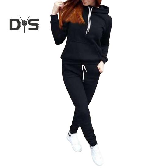 2 шт./комплект женский костюм с капюшоном брюки однотонный плюш длинный рукав толстый верх эластичный пояс брюки с резинкой на щиколотке спортивный фитнес-костюм осень зима XXL чёрный