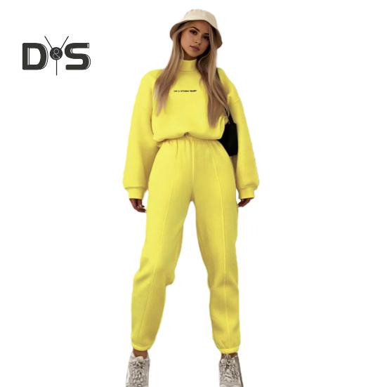 2 шт./комплект женский топ брюки комплект воротник стойка длинный рукав эластичные манжеты толстовка завязка шнурок эластичные брюки с высокой талией до щиколотки спортивные фитнес S жёлтый