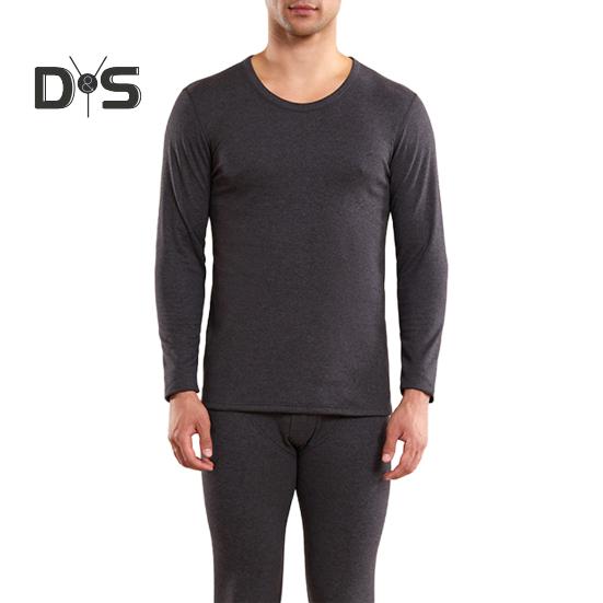 2 шт./комплект зимнее мужское термобелье комплект с круглым вырезом и длинным рукавом теплое плотное высокоэластичное облегающее мужское пижамное белье с открытым шаговым швом спортивный костюм L темно-серого