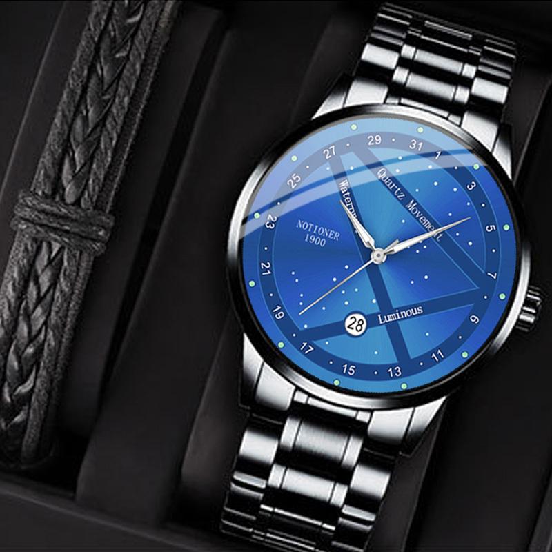 2 шт./комплект NOTIONR Business мужские наручные часы из нержавеющей стали, модные светящиеся кварцевые часы с календарем, мужские подарочные варианты