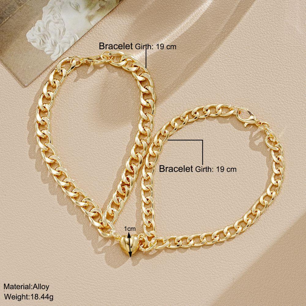 2 шт./компл. браслет для пар с магнитным сердечком, золотые браслеты-цепочки для лучшего друга, аксессуары, ювелирные изделия