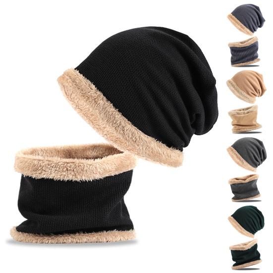 2 шт./компл., женская и мужская зимняя шапка, комплект с шарфом, шапка-бини с утолщенной флисовой подкладкой, теплый комплект для шеи, уличный ветрозащитный комплект