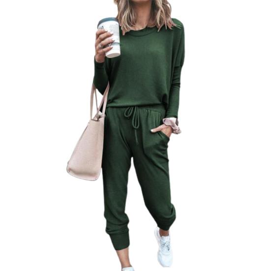 2 шт./компл. женский костюм с круглым вырезом, однотонный свободный простой брючный костюм для повседневной носки XL зелёный