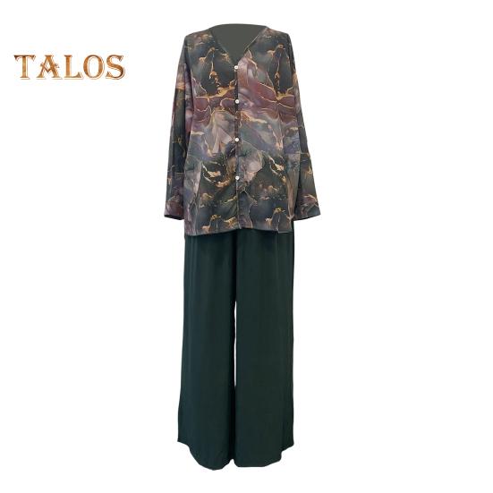 2 шт./компл., комплект женских верхних брюк, мраморный принт, V-образный вырез, длинные рукава, однобортная блузка, широкие плиссированные свободные брюки, повседневная домашняя одежда, одежда для путешествий S