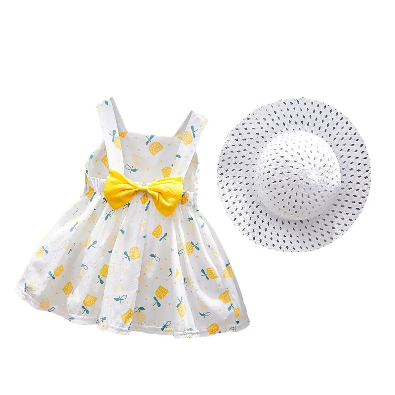 2 шт./компл. летняя одежда для новорожденных, одежда для маленьких девочек, корейское милое хлопковое пляжное платье без рукавов с принтом + с...