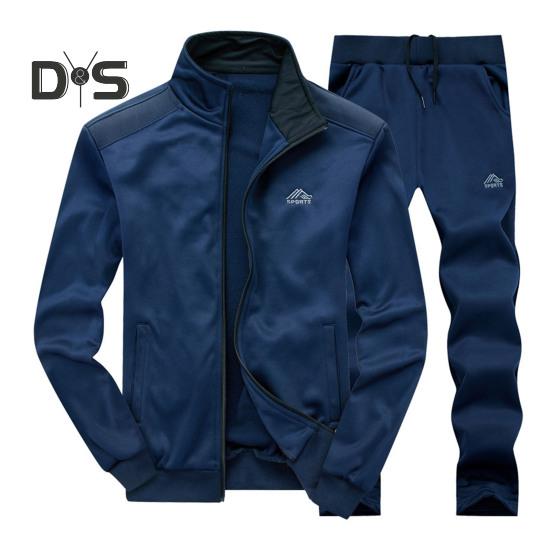 2 шт./компл. мужской спортивный костюм с воротником-стойкой, длинным рукавом, застежкой-молнией, пальто, эластичный пояс с завязками, длинные брюки XL темно-синий