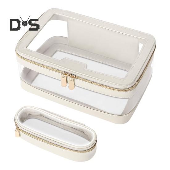 2 шт./компл. прозрачная косметичка на молнии водонепроницаемая большая емкость портативная легкая губная помада коричневый карандаш кисть для макияжа дорожная косметичка белый