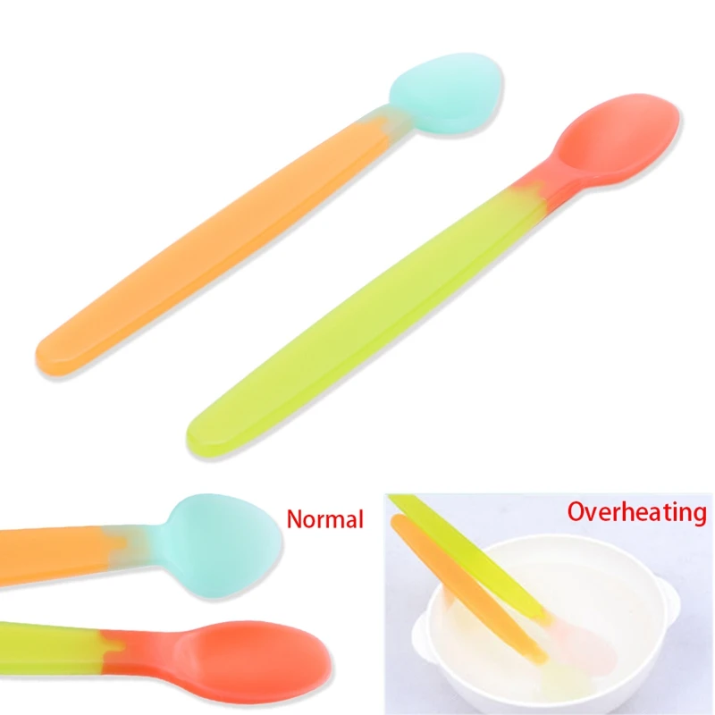2 шт./компл. теплового обесцвечивания Безопасность ложка для кормления, мягкие силиконовые столовые приборы