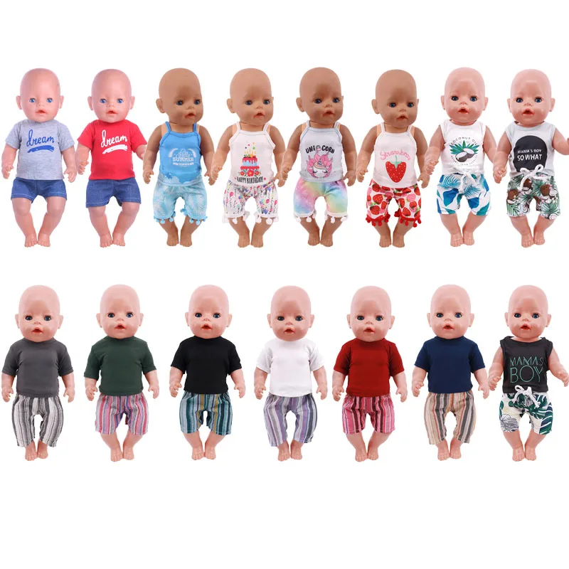 2 шт./компл. футболка + шорты женская одежда подходит для 43 см кукольной одежды для новорожденных 17 дюймов