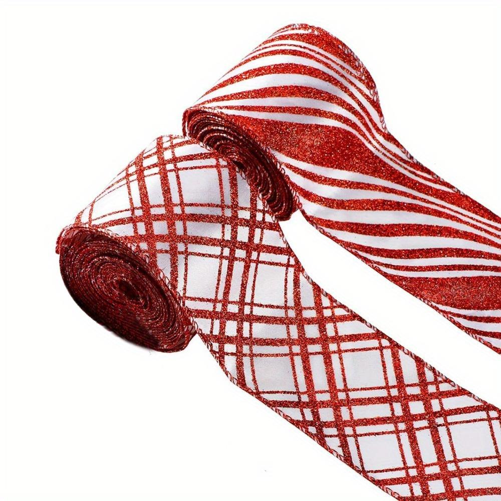 2 шт. красная белая полосатая рождественская лента с проволочным краем, самодельная подарочная упаковка, банты для венков, праздничные украшения, 5 ярдов каждая, проволочная лента для венков 2rolls 5yards