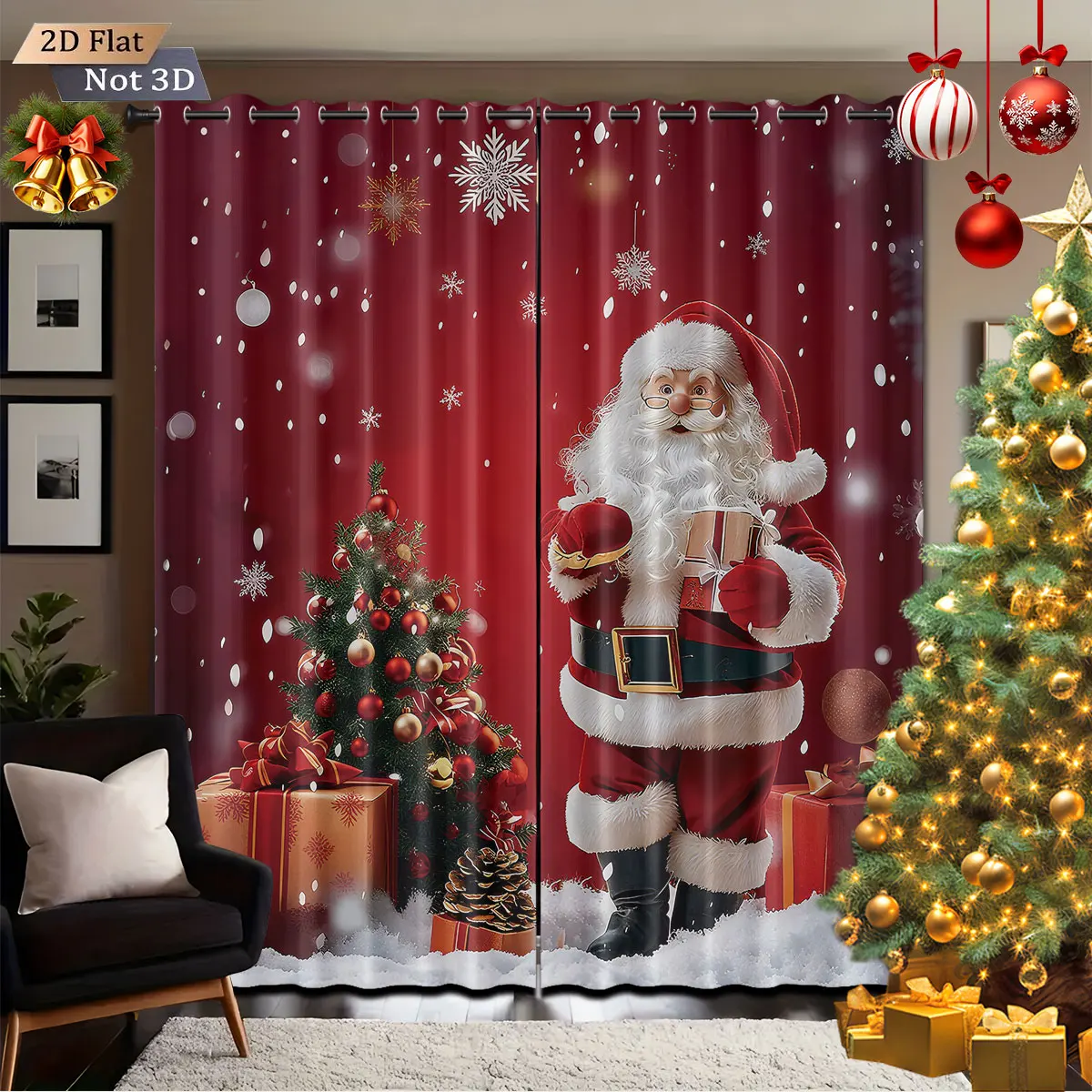 2 шт. красные перфорированные плотные шторы с принтом Санта-Клауса, несколько размеров, изоляция для гостиной, спальни, праздничное украшение