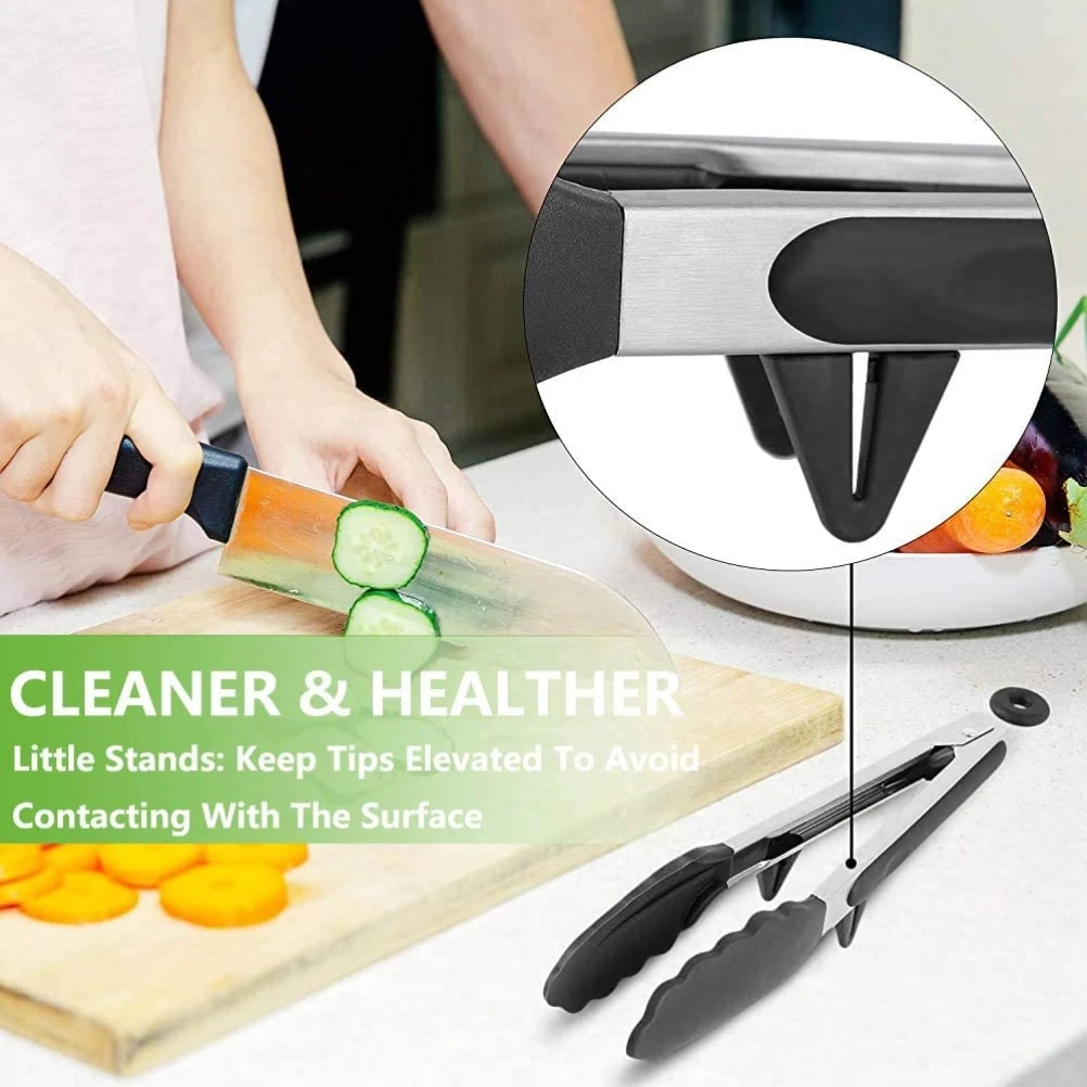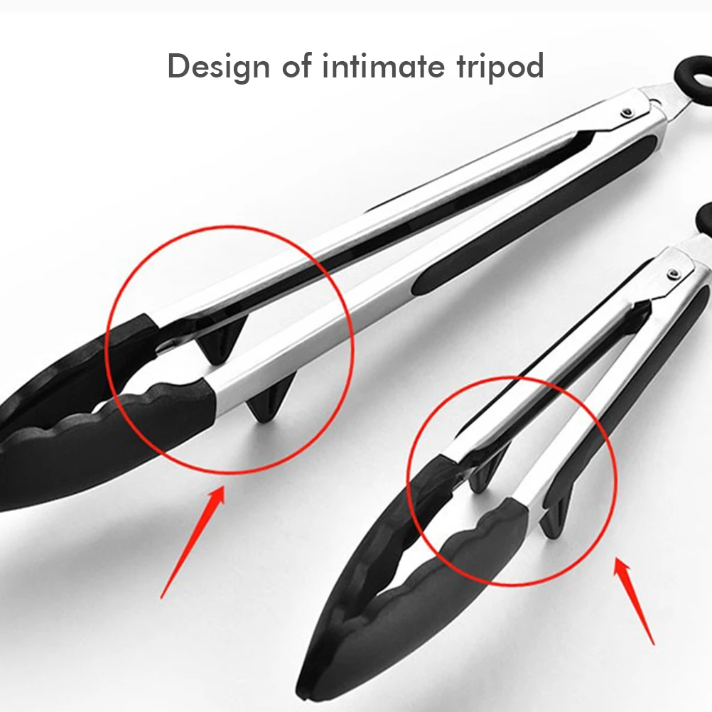2 шт., кухонные щипцы с силиконовыми наконечниками, из нержавеющей стали