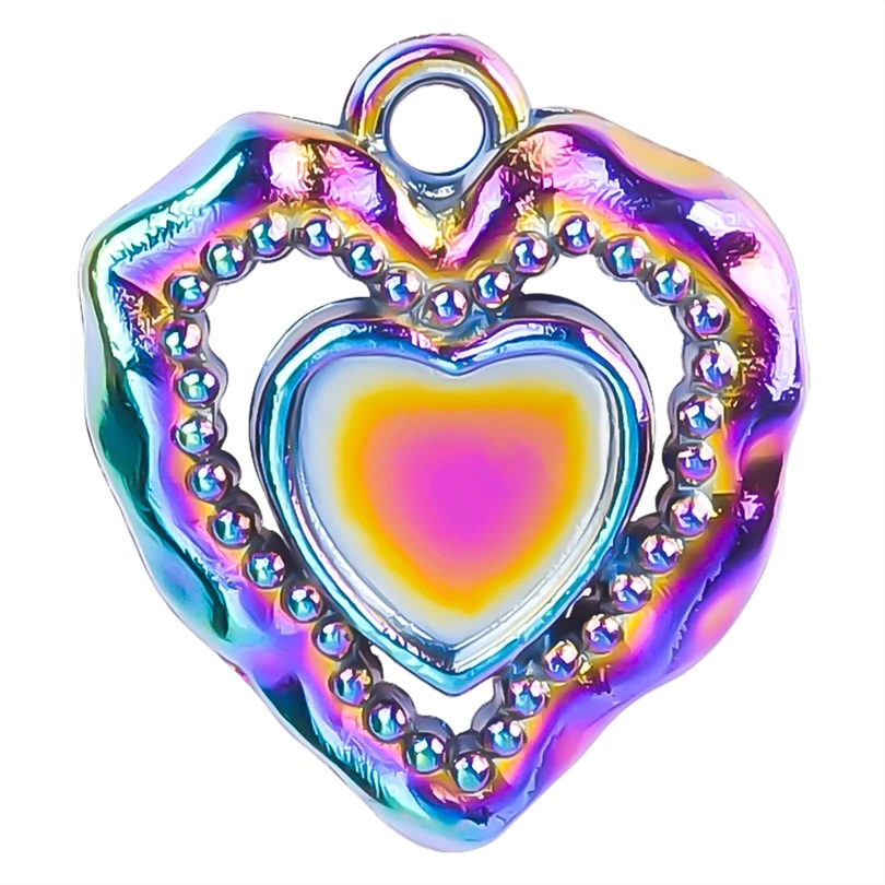 2 шт./лот, подвеска в виде радужной расцветки с двойным ажурным сердечком, подвеска из металлического сплава для брелока, изготовление ювели...