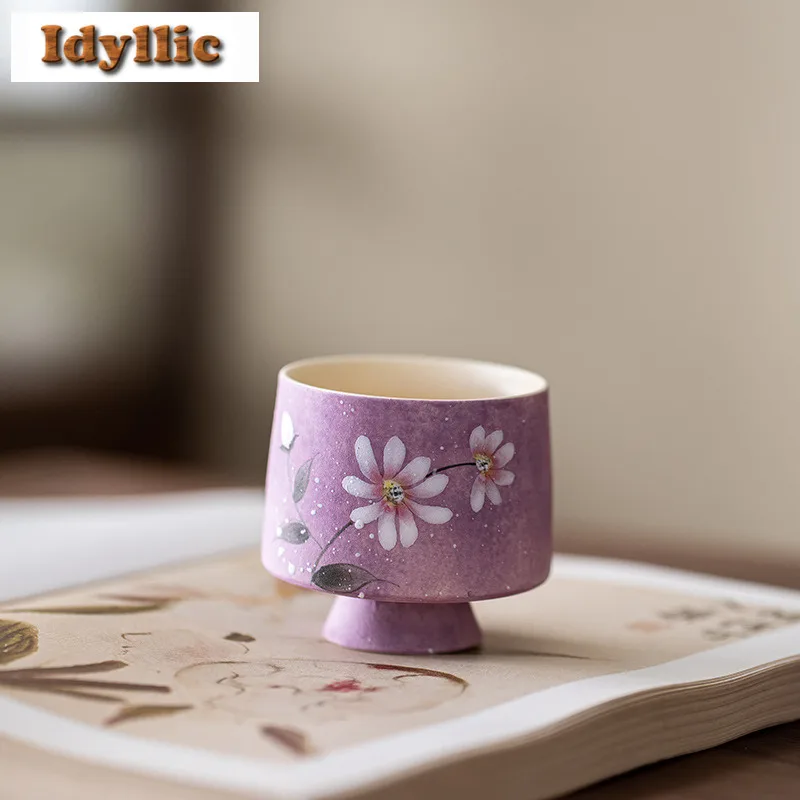 2 шт./лот, ручная роспись, белая ромашка, чайная чашка с высокой ножкой, ретро чайная чаша, чайная пара, персональная чашка для дегустации чая, чашки Jianzhan Master, 50 мл