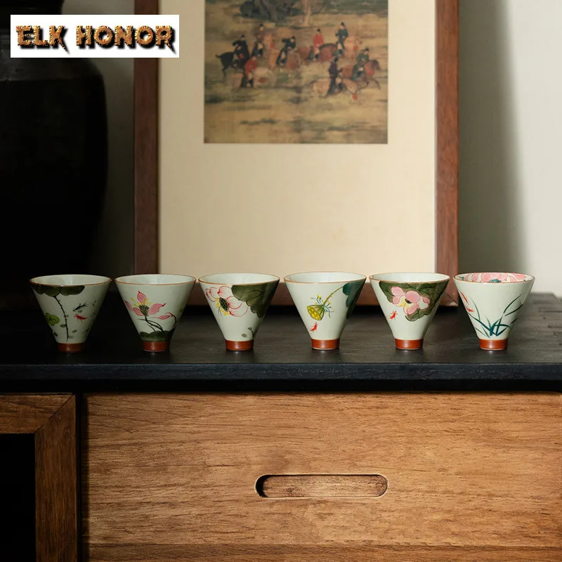 2 шт./лот, ручная роспись, чайная чашка в форме лотоса, винтажная чайная чаша, одиночные чашки, чашка с ароматом для дегустации чая, чашки Chazhan Master, чайная церемония, 50 мл
