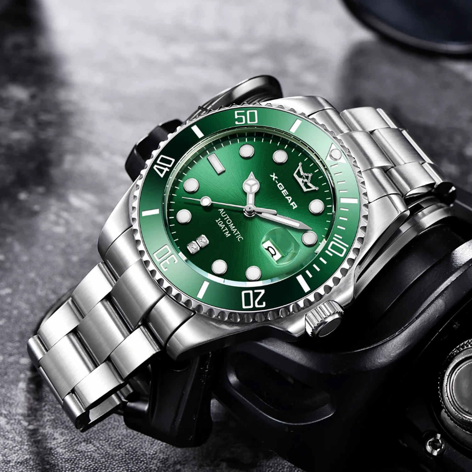 X-GEAR Мужские классические часы с механическим механизмом Water Ghost и лупой-календарь, керамический безель из нержавеющей стали