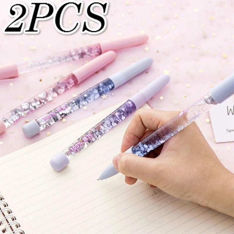 2 шт., милая шариковая ручка 0,5 мм, дрейф, песок, блестящая хрустальная ручка, многоцветная креативная шариковая ручка, подарок для детей