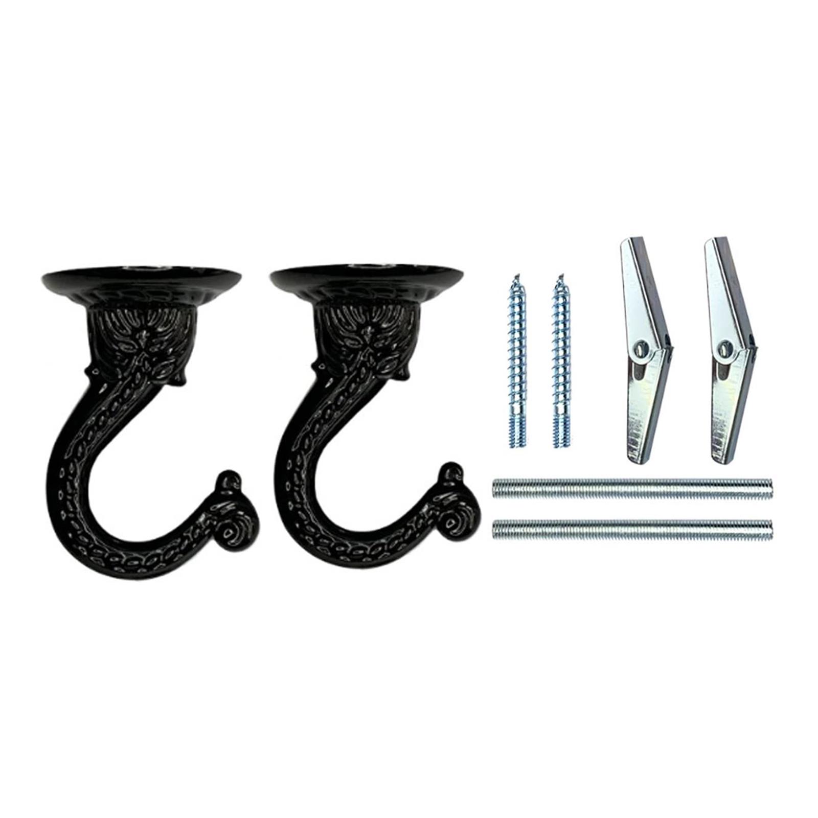 2 шт. многоцелевых и прочных металлических крючка для установки на потолок и стены, идеально подходят для украшения дома и магазина чёрный