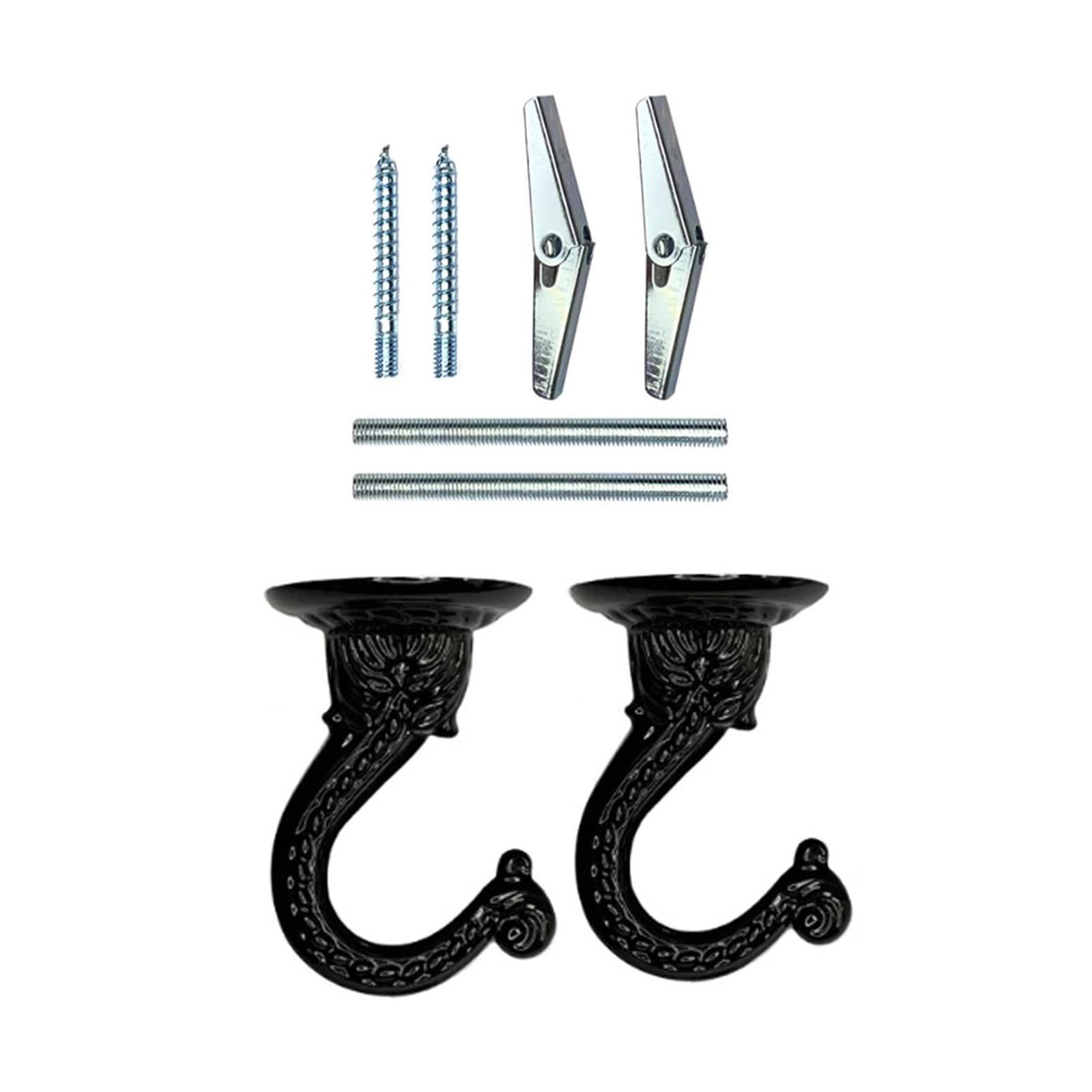 2 шт. многоцелевых и прочных металлических крючка для установки на потолок и стены, идеально подходят для украшения дома и магазина чёрный