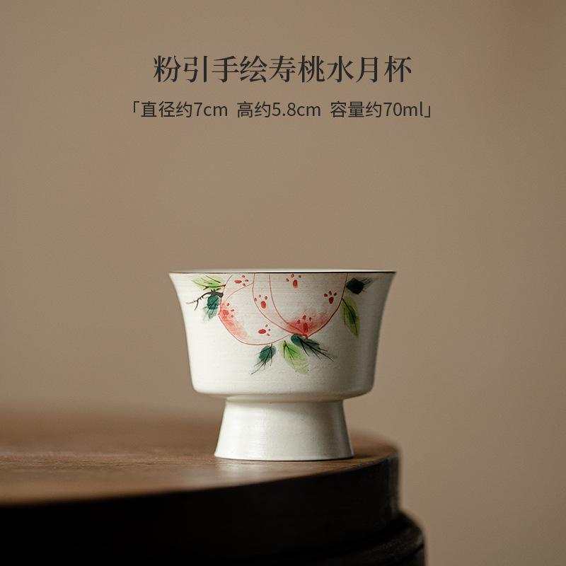 2 шт./набор китайских чайных чашек с порошком Инь, расписанных вручную, чашка Longevity Peach Master Cup Water Moon Cup, маленькая высокая пиала для чая, чайная утварь 70 мл