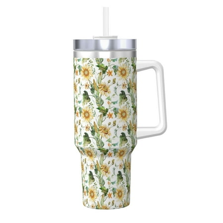Uemuo Bright Sunflowers Print 40oz Ice Bully With Handle And Straw Stainless Steel Vacuum Insulated Cup And 2 In 1 Straw Lid Insulated Travel Tumbler