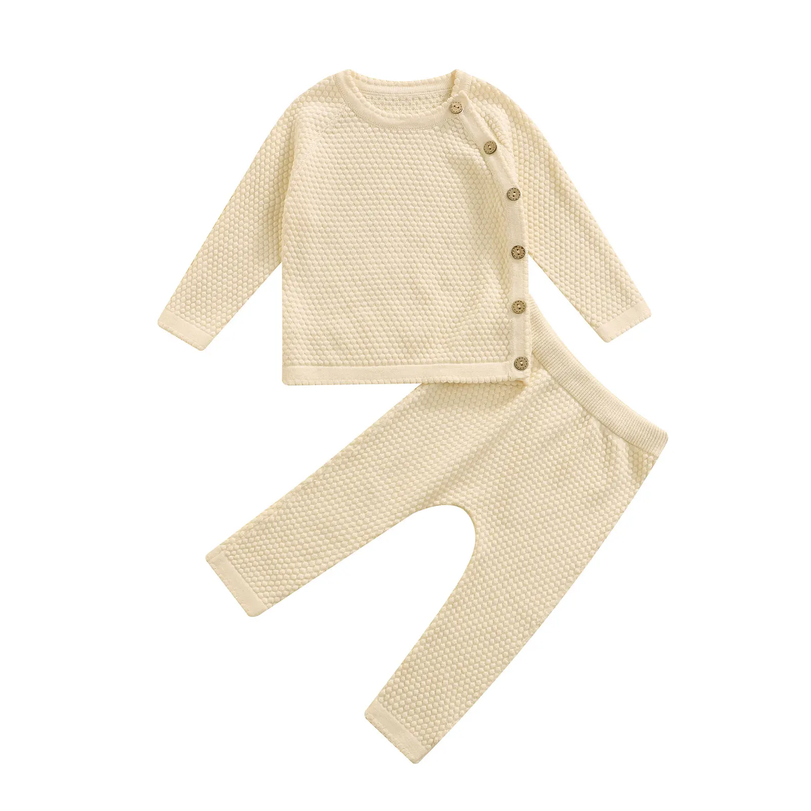 2 шт., однотонный зимний свитер с длинным рукавом и круглым вырезом и брюки