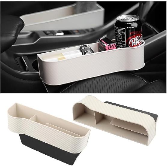 2 шт., органайзер для заполнения зазоров между сиденьем автомобиля, карбоновый заполнитель зазоров между сиденьем и консолью, многофункциональный органайзер для хранения вещей в автомобиле, салон автомобиля бежевый