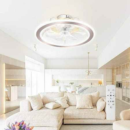 Fans with Lights Bladeless Ceiling Fan with Light Flush Mount Ceiling Fan with Lights Remote Control Low Profile 3 Speeds 3 Color Led Dimmable Lighting Indoor White