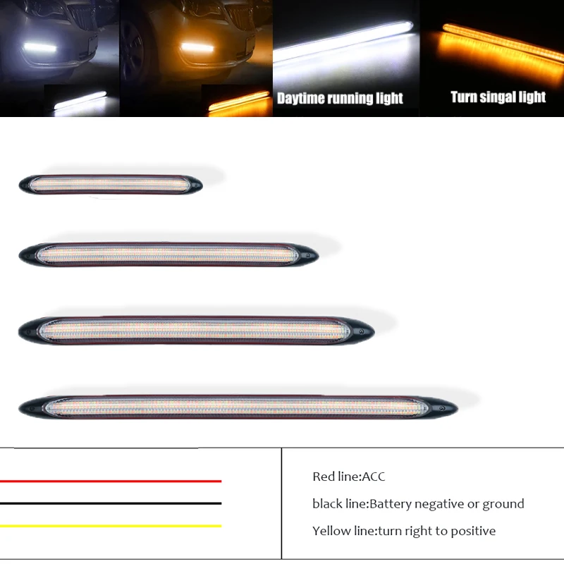 2 шт. последовательного потока светильник Автомобильный светодиодный указатель поворота DRL Противотуманные Гибкая DC 12V декоративный верх светильник цвет: желтый, белый день лампы