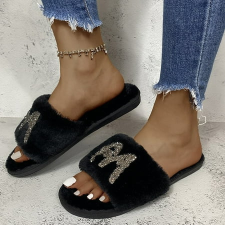 〖Yilirongyumm〗 Black 40-41 Slippers For Women Fashion Point Casual Rhinestone Women s Cotton Open Toe Slippers Flat Slippers Women s Slipper