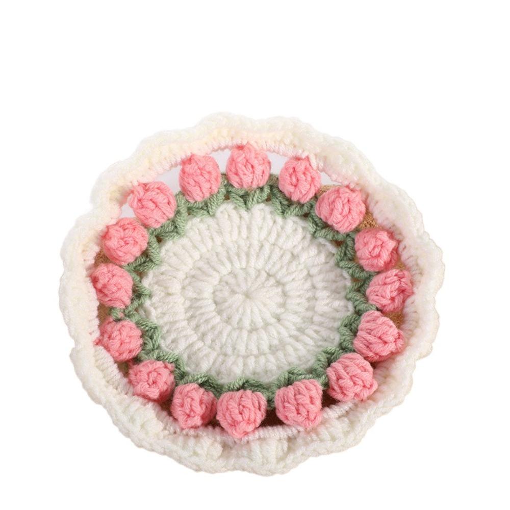 2 шт. прочные подставки под стаканы ручной работы с цветочным узором, круглые, в стиле Ins, вязанные вручную салфетки, многоразовые, 13 см, тканые подставки под чашки, кухня розы красного