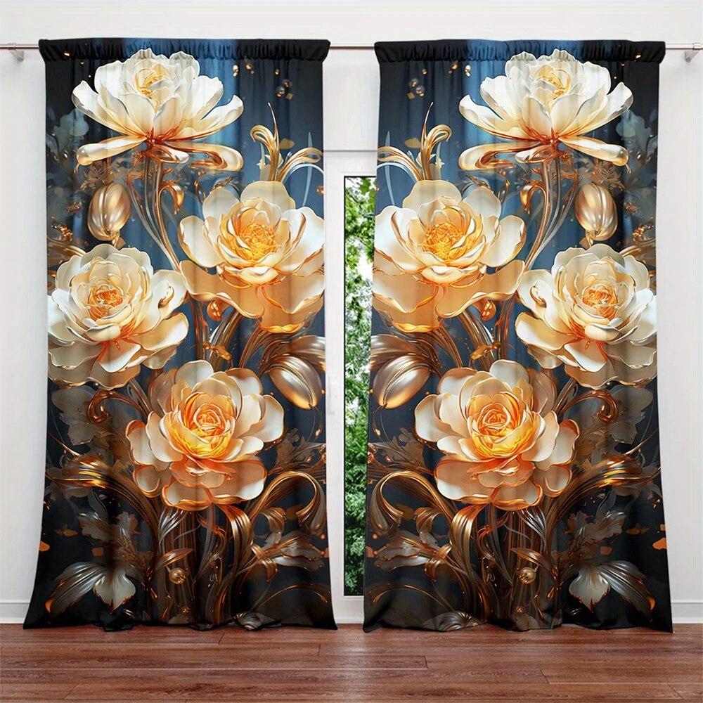 2 шт., роскошные ретро-занавески с принтом для домашнего декора, карманные занавески для окон, спальни, офиса, кухни, гостиной, кабинета W50xH130(CM)x2PCS-Grommet Top