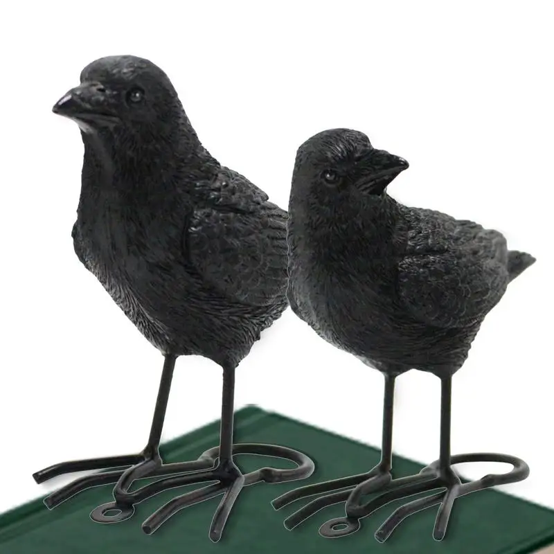 2 шт., статуэтка ворона, садовая статуэтка животного, статуэтка ворона из смолы, ворона для двора, лужайки, сада, дома