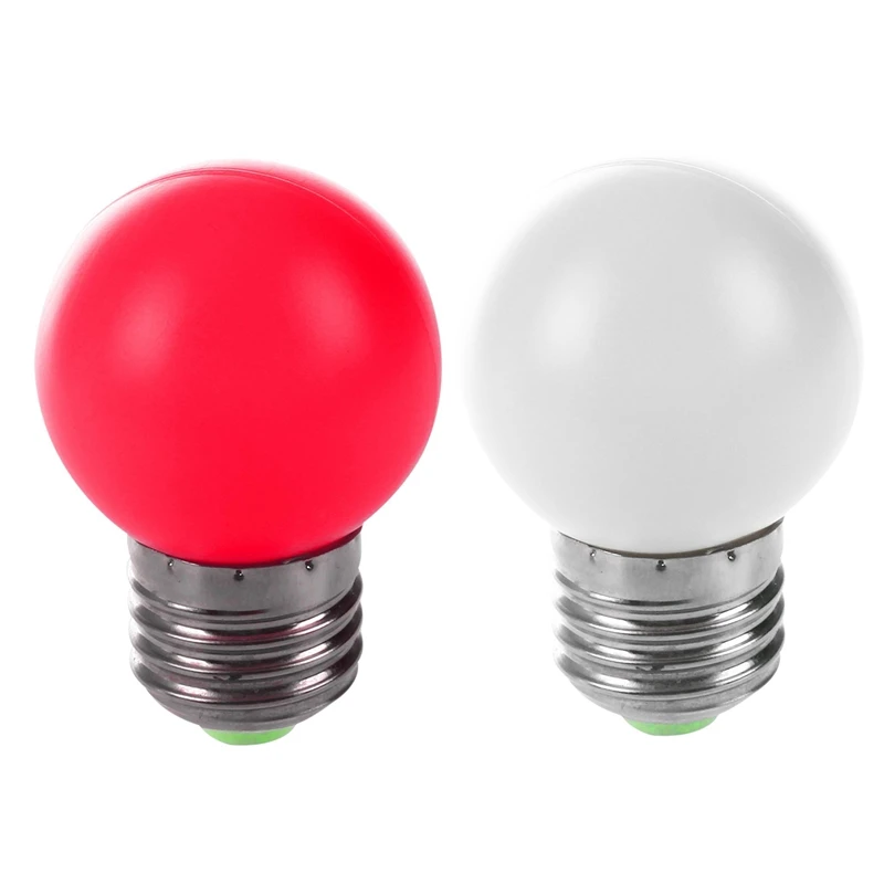 2 шт., цоколь E27, фотолампа, пластиковая лампа, мощность 0,5 Вт, белый и красный