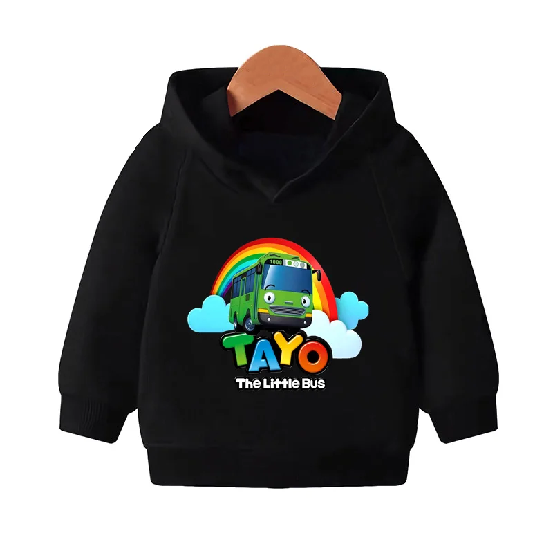 Лидер продаж, детские толстовки Tayo с капюшоном и принтом маленьких автобусов, милая Одежда для девочек, детские свитшоты, осенний пуловер для малышей, топы, KMT5837