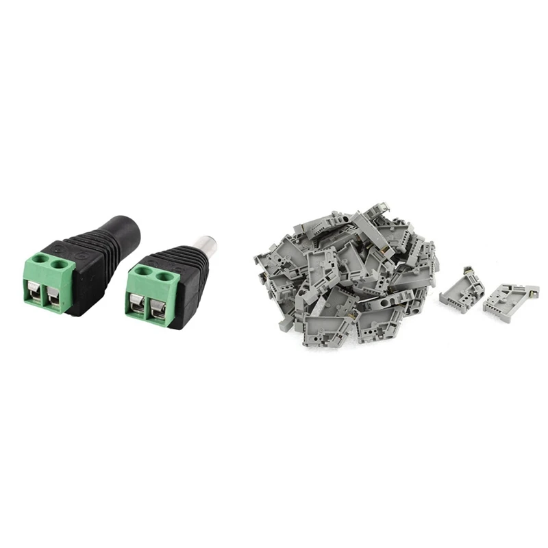 2 шт. штекер и гнездо 5,5X2,1 мм разъем постоянного тока и 50 шт. 35 мм концевые зажимы для клеммной колодки DIN-рейки стопоры монтажные зажимы