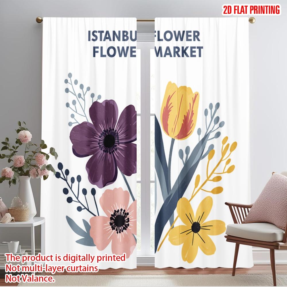 2 шт. 2D плоская печать Праздничные шторы Цветочный рынок Стамбула Полиэстеровая ткань Без электричества Сезонный праздничный декор 52.50×116.00 CM 2pcs